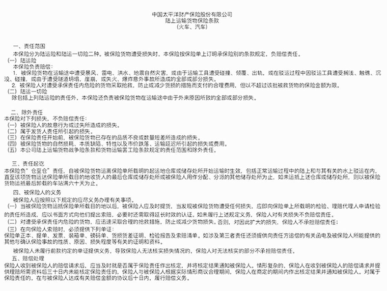 | 事实上我们有近乎完美的车辆交付纪录(99%的无投诉率)。在商品车运输的过程中,由于天气,路况等原因有可能出现划伤、碰伤等外部伤害,如果出现交通事故的话,有可能对车辆造成比较严重的伤害。虽然我们的每一名司机师傅都有强烈的责任心和丰富的商品车运输经验。但是,天有不测风云!如果出现以上情况时,该怎么办呢?现在您可以不为这种情况担忧了!志强兴公司和太平洋保险公司联手为客户精心制定出了一套保险方案,使得您托运的车辆一旦出现情况能够在短时间内得到赔付!